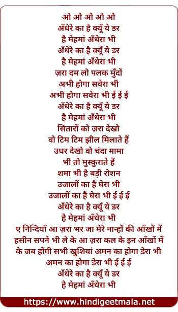andhere ka hai kyu ye dar, hai mehman andhera bhi