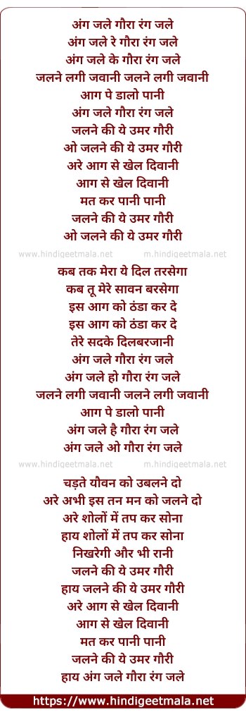 Lyrics of Ang Jale Gora Rang Jale - अंग जले गौरा रंग जले