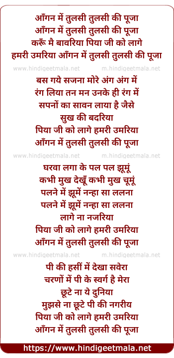Lyrics of Angan Me Tulsi, Tulsi Ki Puja - आँगन में तुलसी, तुलसी की पूजा