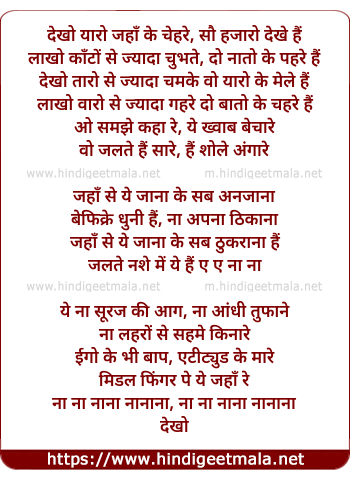 Lyrics of Angarey - देखो यारो जहाँ के चेहरे, सौ हजारो देखे हैं