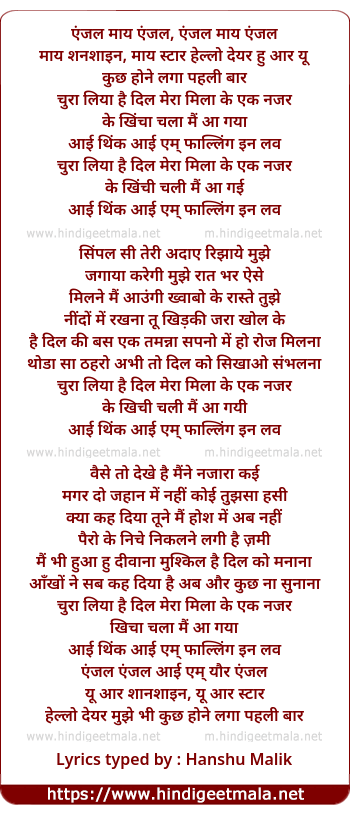 Lyrics of Angel My Angel - एंजल माय एंजल