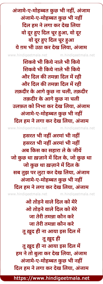 Lyrics of Anjaam E Muhabbat Kuchh Bhi Nahin - अंजामे-ए-मोहब्बत कुछ भी नहीं, अंजाम
