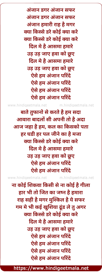 Lyrics of Anjaan Parindey (Title Song) - अंजान डगर अंजान सफर