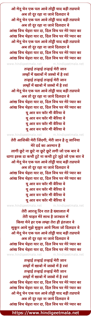 o mainu chain naa ik pal aave toddi yad badi tadpave
