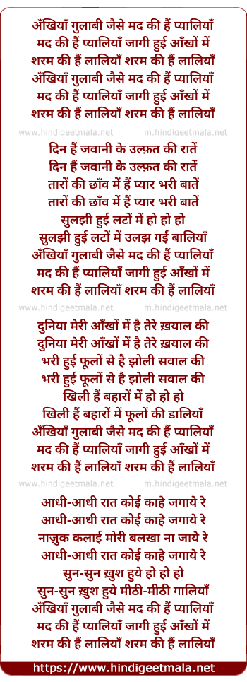 Lyrics of Ankhiya Gulabi Jaise - अँखियाँ गुलाबी जैसे