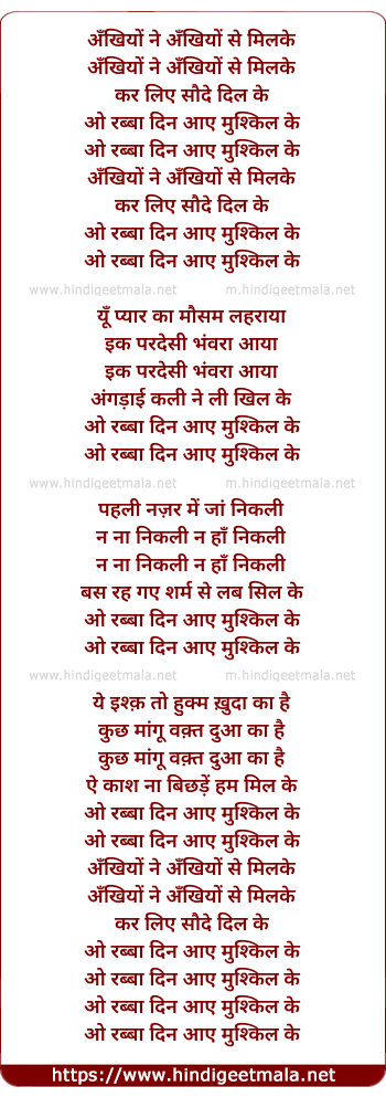 Lyrics of Ankhiyon Ne Ankhiyon Se Mil Ke - अँखियों ने अँखियों से मिलके