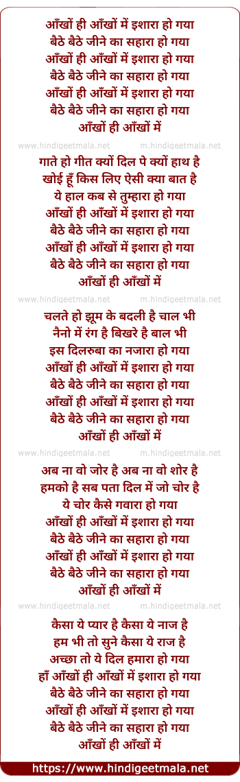 Lyrics of Ankho Ankho Me Ishare Ho Gaye - आँखों ही आँखों में इशारा हो गया