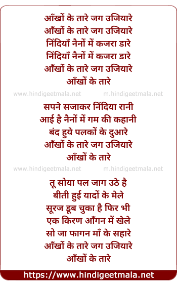 Lyrics of Ankho Ke Tare Jag Ujiyare - आँखों के तारे जग उजियारे