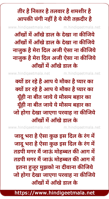 Ankho Me Ankhe Daal Ke Dekha Na Kijiye - आँखों में आँखे डाल के देखा ना कीजिये