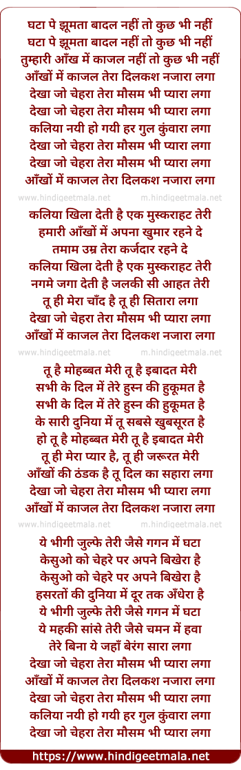 Lyrics of Aankho Me Kajal Tera Dilkash Najara Laga - आँखों में काजल तेरा दिलकश नजारा लगा