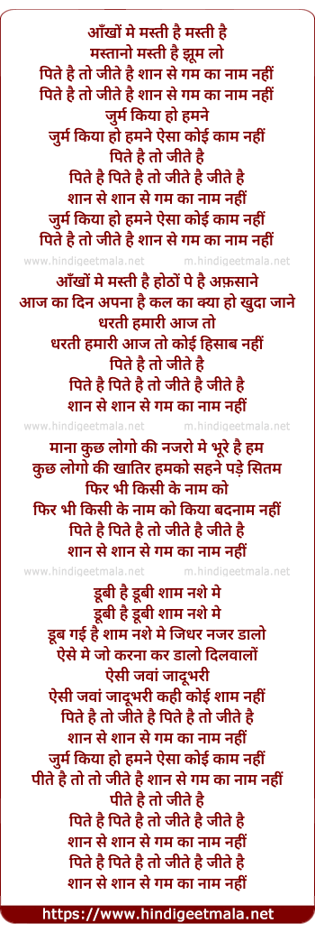 Lyrics of Ankho Me Masti Hai - आँखों मे मस्ती है