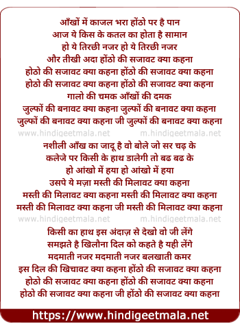 Lyrics of Ankhon Me Kajal Bhara - आँखों में काजल भरा