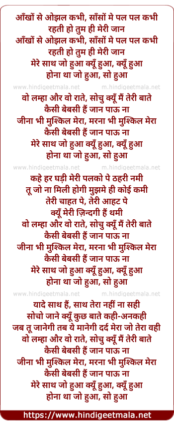 Lyrics of Ankhon Se Ojhal - आँखों से ओझल