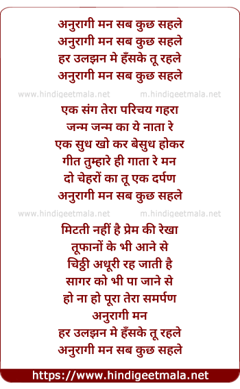 Lyrics of Anuragi Man Sab Kuch Sah Le - अनुरागी मन सब कुछ सहले