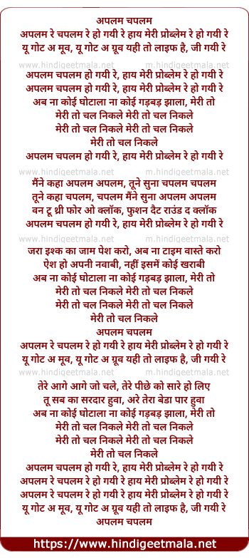 Lyrics of Aplam Chaplam Ho Gayi Re - अपलम चपलम हो गयी रे
