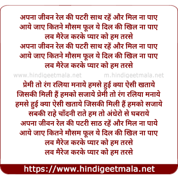 Lyrics of Apna Jeevan Rail Ki Patri, Sath Rahe Or Mil Na Paaye - अपना जीवन रेल की पटरी, साथ रहें और मिल ना पाए