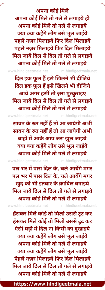 Lyrics of Apna Koyi Mile - अपना कोई मिले