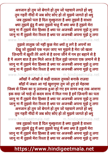 anjaan ho tum jo begaane ho tum jo pahchaane lagte ho kyu