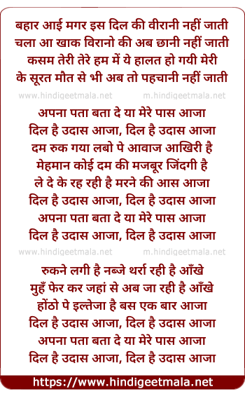 Poetic Translation - Lyrics of Apna Pata Bata De - अपना पता बता दे