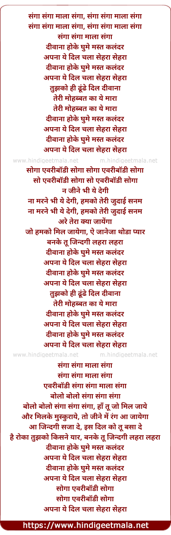 Lyrics of Apna Yeh Dil Chala Sehra Sehra - अपना ये दिल चला सेहरा सेहरा