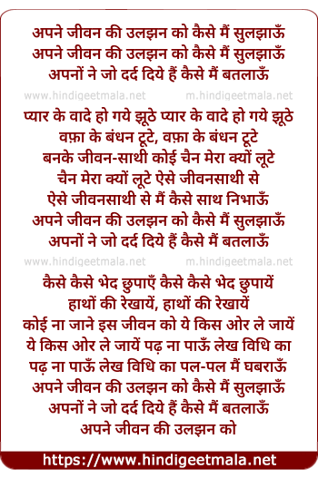 Lyrics of Apne Jivan Kee Uljhan Ko Kaise Main Sulajhaau - अपने जीवन की उलझन को कैसे मैं सुलझाऊं