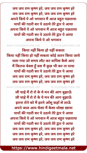 Lyrics of Apne Kiye Pe O Bhagwan Mai Aaj Bahut Pachtaya - अपने किये पे ओ भगवान मैं आज बहुत पछताया