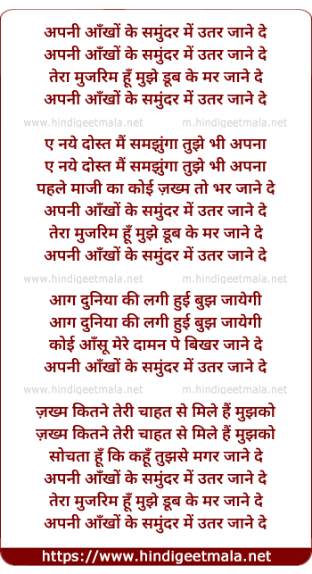 Lyrics of Apni Aankho Ke Samunder Me - अपनी आँखों के समुंदर में उतर जाने दे