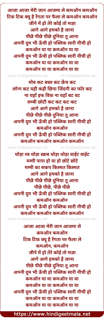 aaja aaja meri jaan aajma le come on come on