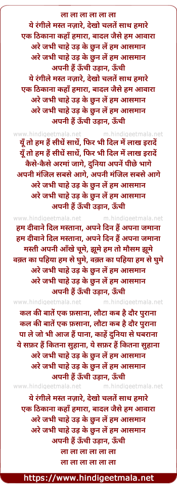 Lyrics of Apni Hai Unchi Uraan - अपनी हैं ऊँची उड़ान