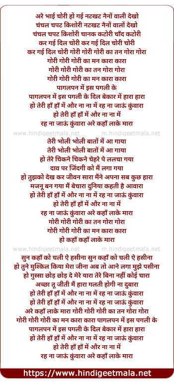 kar gayi dil ki chori gori gori gori ka tan gora gora