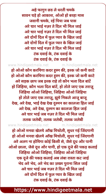 Lyrics of Are Chaar Bhai Jab Najar Te Dil Bhi Mil Jayi - अरे चार भाई जब नज़र ते दिल भी मिल जाई