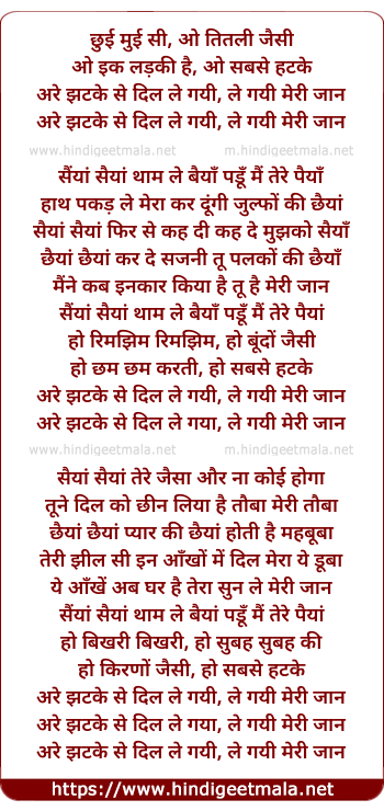 Lyrics of Are Jhatke Se Dil Le Gayi - अरे झटके से दिल ले गयी