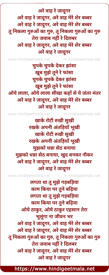 are wah re jadugar, are wah mere sher babbar
