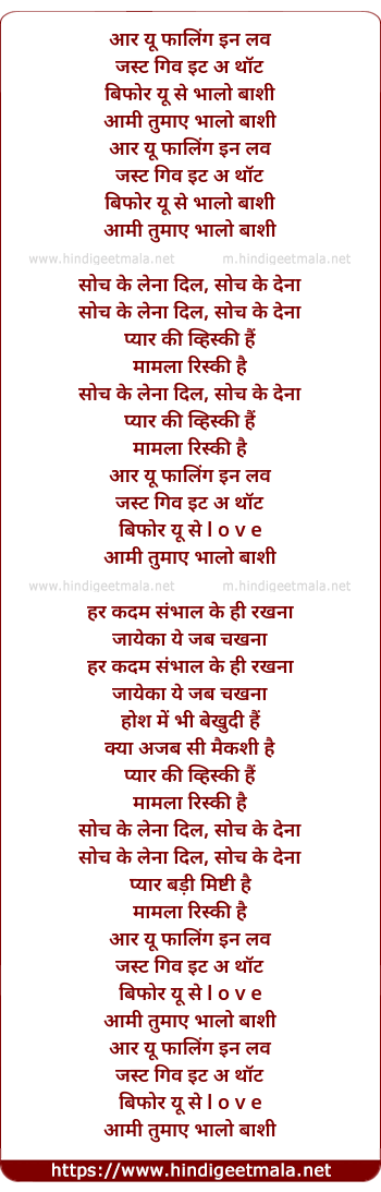 Lyrics of Are You Falling In Love - आर यू फालिंग इन लव