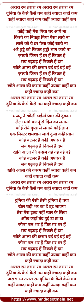 Lyrics of Arraa Ram Tarraa Ram Duniyaa Ke Kaise Gam - अरारा रम तरारा रम दुनिया के कैसे गम