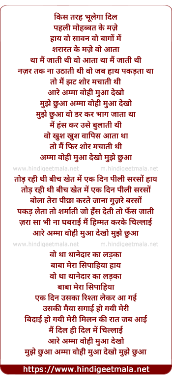 Lyrics of Arre Amma Wohi Mua - आरे अम्मा वोही मुआ