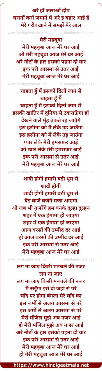 o meri mehbuba aaj mere ghar aayi