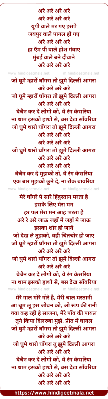jo jhume mharo ghagra to jhume delhi agra