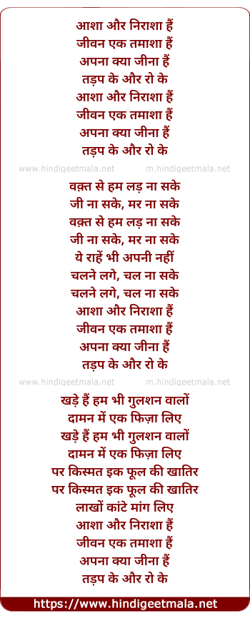 Lyrics of Asha Aur Niraasha Hai - आशा और निराशा हैं