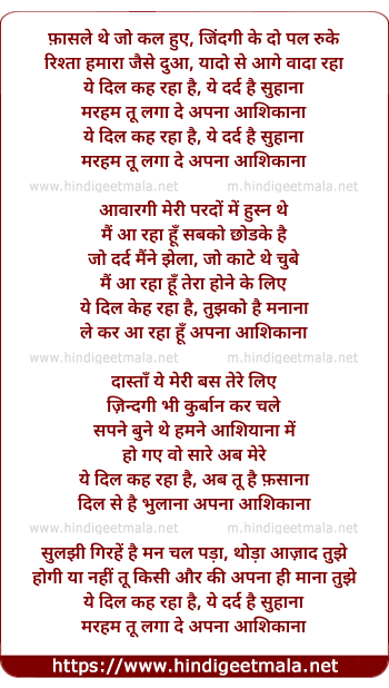 ye dil kah raha hai, ye dard hai suhana