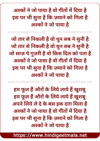 Lyrics of Ashkon Ne Jo Paya Hai - अश्कों ने जो पाया है