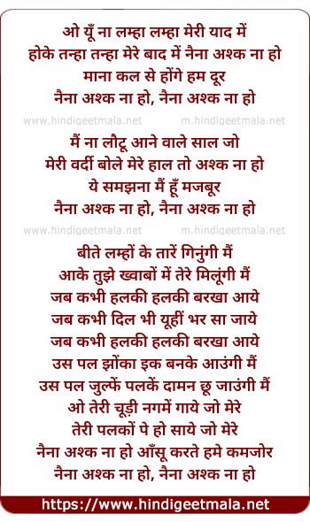 Lyrics of Ashq Na Ho (Asees Kaur) - ओ यूँ ना लम्हा लम्हा मेरी याद में