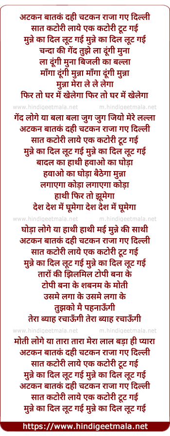 Lyrics of Atkan Chatkan Dahi Chatokan - अटकन चटकन दही चटोकन