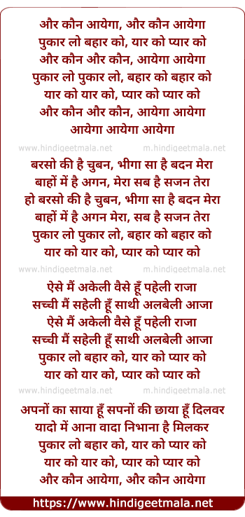 Lyrics of Aur Kaun Aayega - और कौन आयेगा