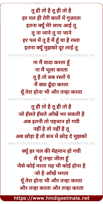 Lyrics of Aur Tanha (Tu Hi To Hai) - और तन्हा (तू ही तो है)