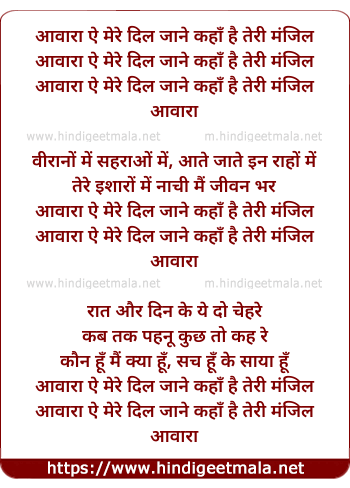 Lyrics of Awaara Ae Mere Dil Jane Kaha Hai Teri Manzil - आवारा ऐ मेरे दिल जाने कहाँ है तेरी मंजिल