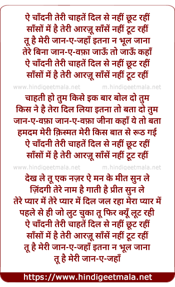 ai chandani teri chahte dil se nahi chhut rahi