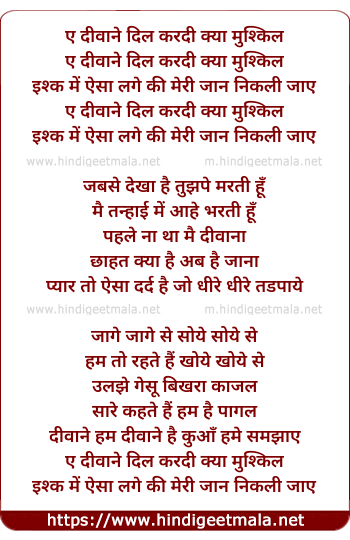 aye diwane dil kardi kya mushkil