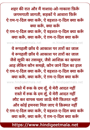 Lyrics of Ae Gam-E-Dil Kya Karu - ऐ ग़म-ए-दिल क्या करूँ