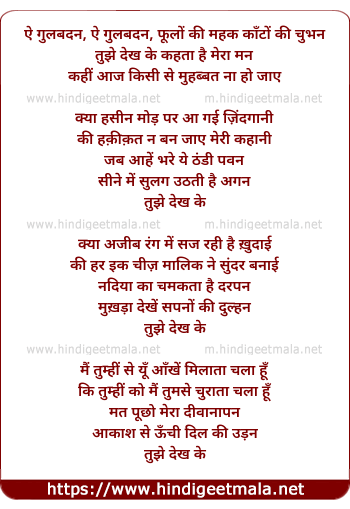 Lyrics of Aye Gulbadan, Phulo Ki Mehak Kanto Ki Chubhan - ऐ गुलबदन, फूलों की महक काँटों की चुभन